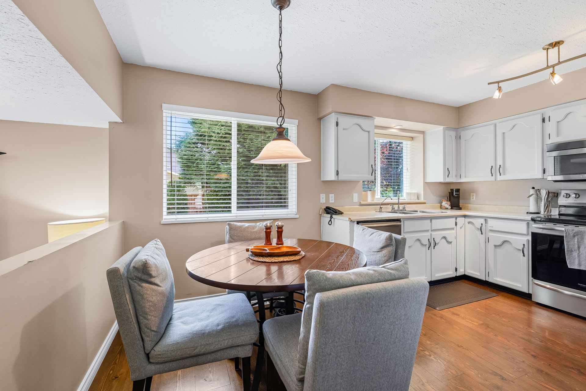 Welcome to this spacious 2,171 sq ft family home, perfectly situated on a generously sized 7,126 sq ft lot in a quiet cul-de-sac just minutes from White Rock. Bright and beautifully updated, this home features stunning fir hardwood floors, a cozy wood-burning fireplace, and 4 large bedrooms with 3 full bathrooms—ideal for growing families. The sun-drenched, south-facing backyard is perfect for entertaining, complete with a low-maintenance deck. Located within walking distance to Bayridge Elementary and top-ranked Semiahmoo Secondary (Baccalaureate Program), and just minutes from the South Surrey Rec Centre, parks, trails, White Rock Beach, HWY 99, and the US border. This is your chance to own in one of South Surrey’s most desirable neighbourhoods!