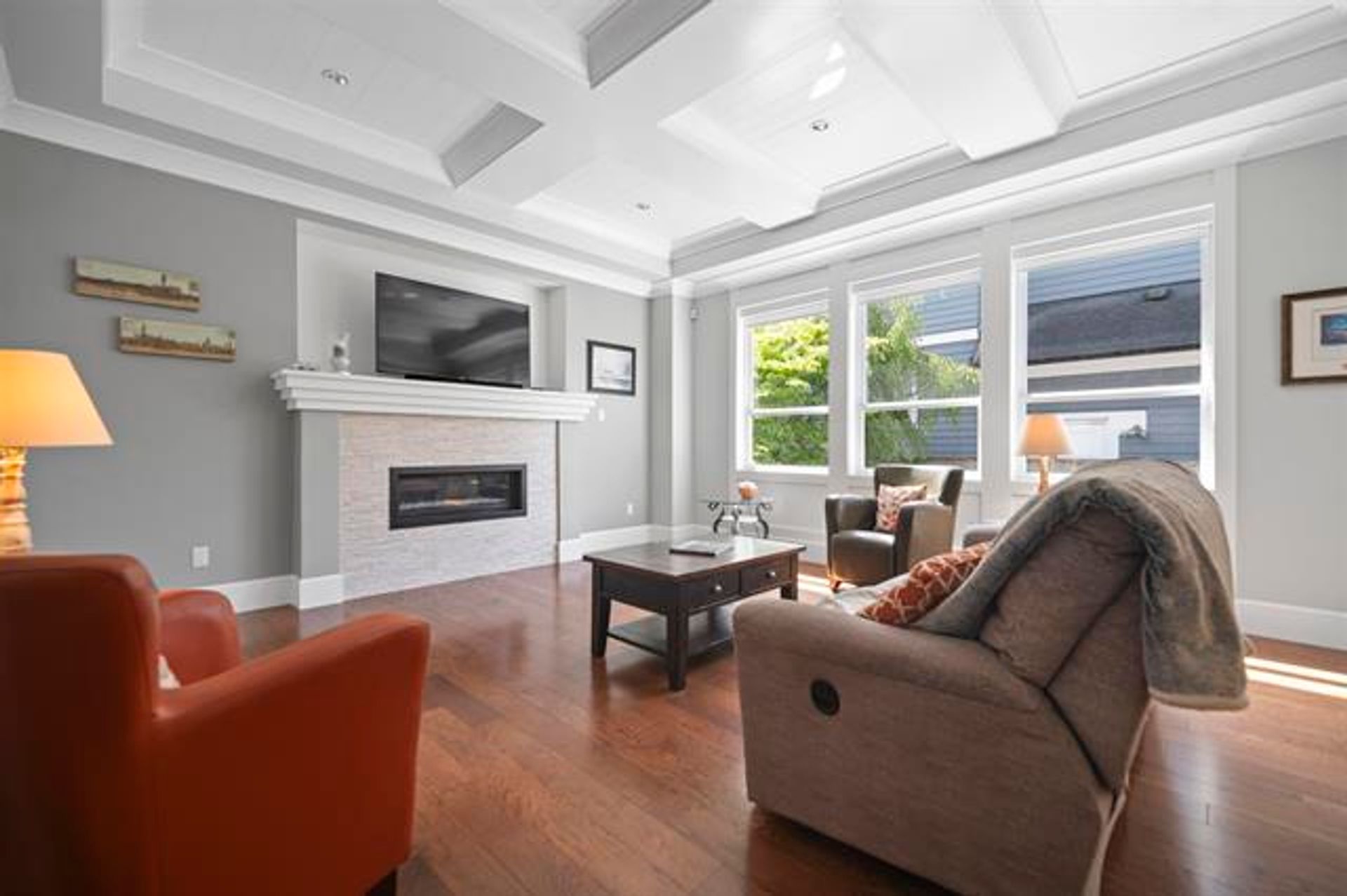 One of the nicest locations in Summerfield. Corner windows, front covered wrap around porch enjoy views Peace Portal Golf Course. 4,111 sq. ft. lot, south/west private sunny hedged rear yard. Built by Castlview Homes offering quality. 3,490 sq. ft. plan, main floor great room & open den, 3 upper level brds, plus family room. 1-bedroom legal bsmt. suite, plus main floor or bsmt. suite flex room. 9 to 10 ft. ceilings, concrete on main/upper floors, detailed mill work, engineered hardwood floors, white kitchen, stainless appliances, quartz tops, hardy board siding, stone front, stamped concrete driveway. Walk across to Peace Portal Golf Course & fine dining. Walk to shops, Peace Portal Park & beach, Douglas Elementary, bus to Earl Marriot. Call today for your private viewing!